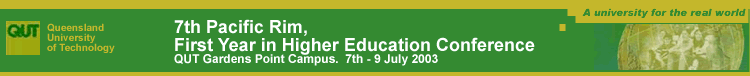 AUTHOR, (DATE) TITLE. The Sixth Pacific Rim - First Year in Higher Education Conference: Changing agendas "Te Ao Hurihuri". The University of Canterbury, Christchurch, New Zealand. Christchurch, 5-7 July 2001.